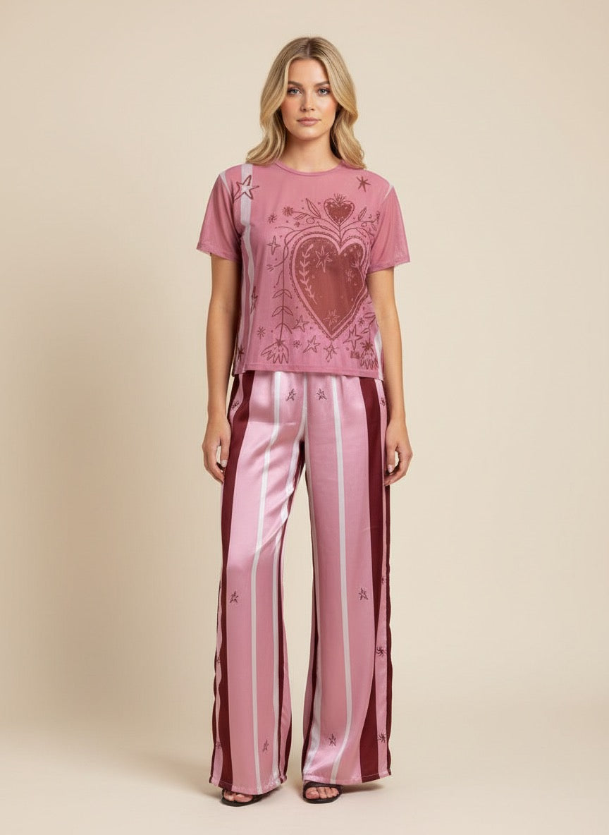 Printed in the USA with premium-quality techniques, this design features vibrant pink and red accents symbolizing love, unity, and confidence. The bold yet feminine color palette makes it easy to style for casual outings or elevated looks.