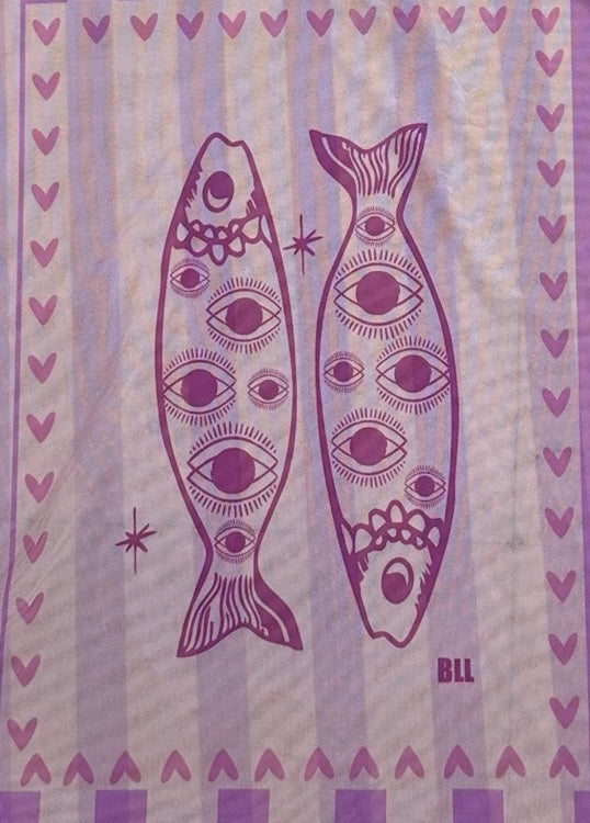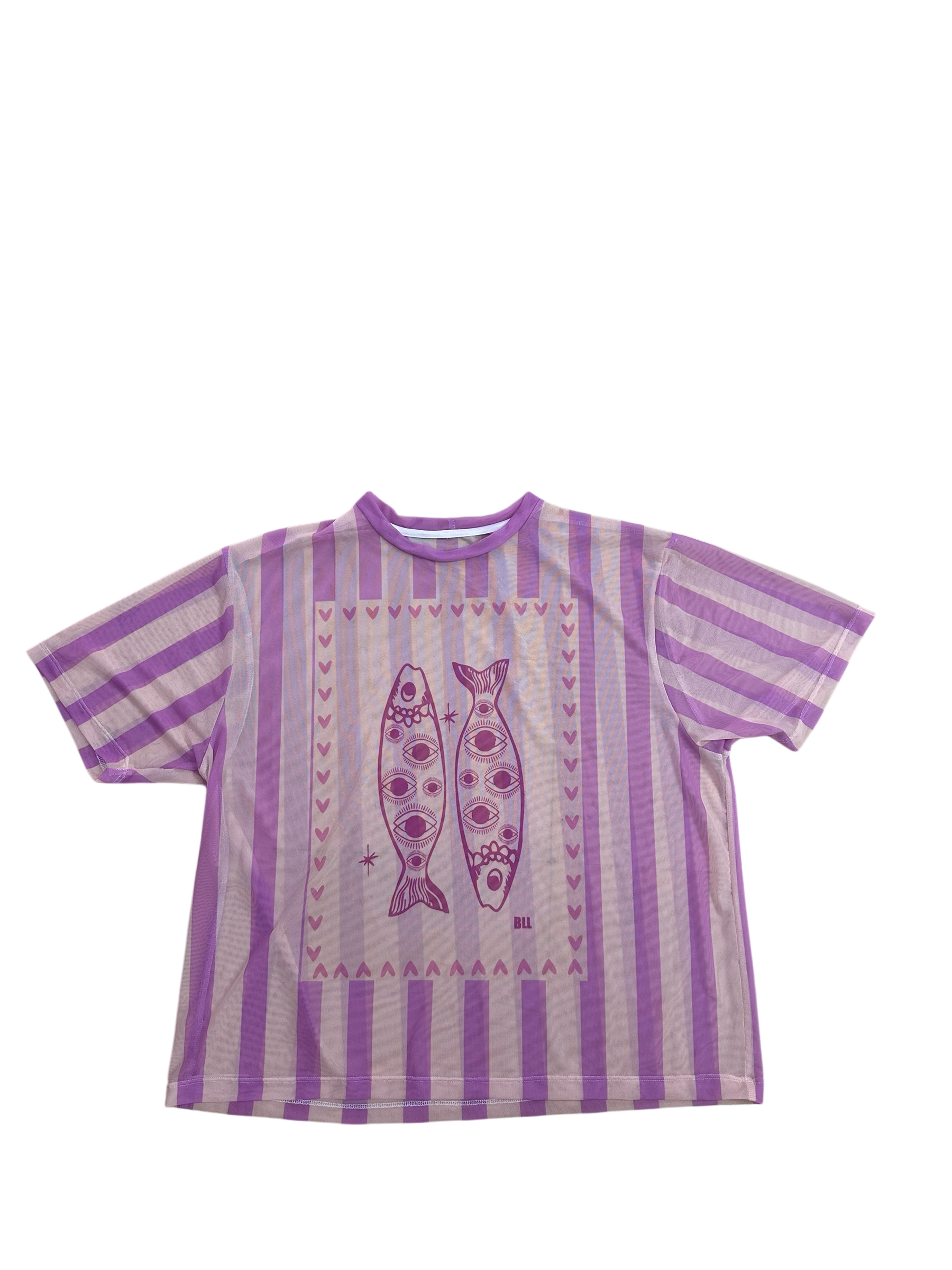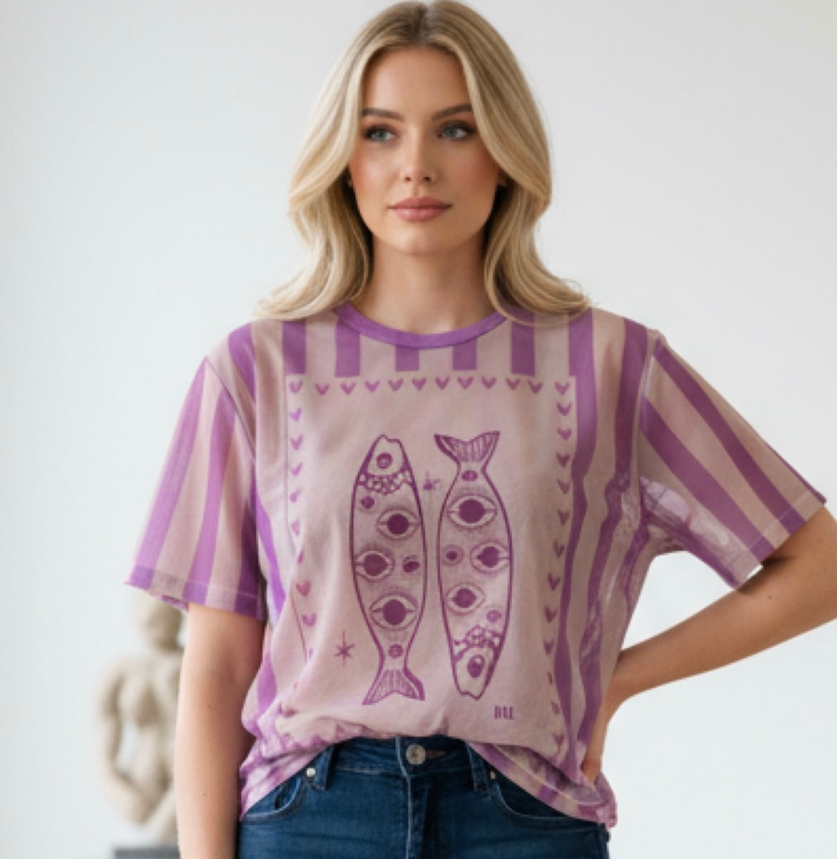 Tshirt malla print evil eyes and fish. Trend an fashion one size