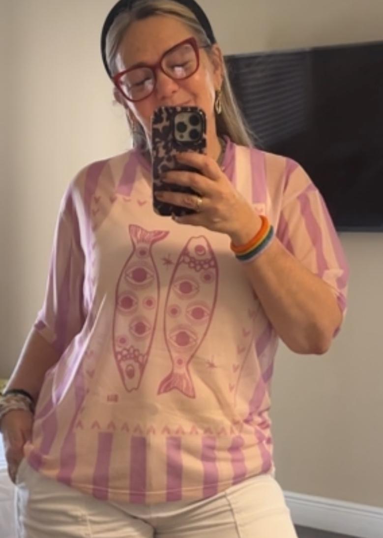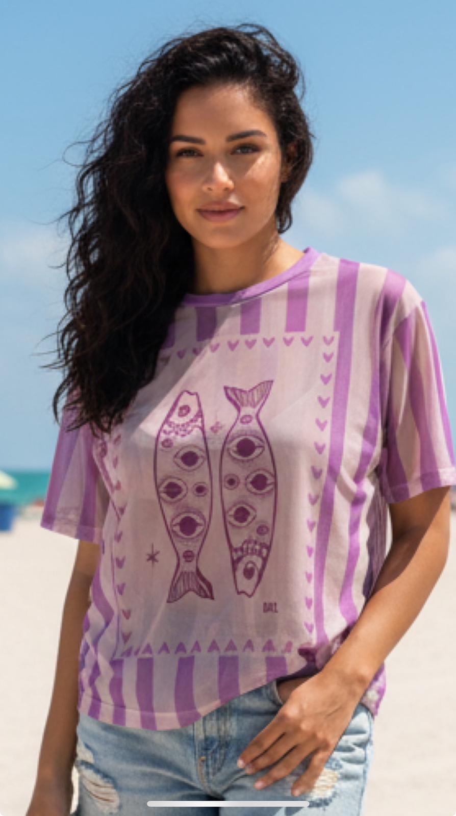 Tshirt malla print evil eyes and fish. Trend an fashion one size